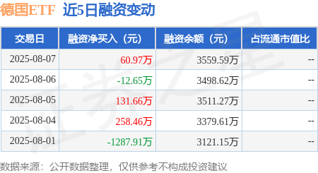 本站音尘,8月7日,德国ETF(513030)融资买入905.34万元,融资偿还844.38万元,融资净买入60.97万元,融资余额3559.59万元。